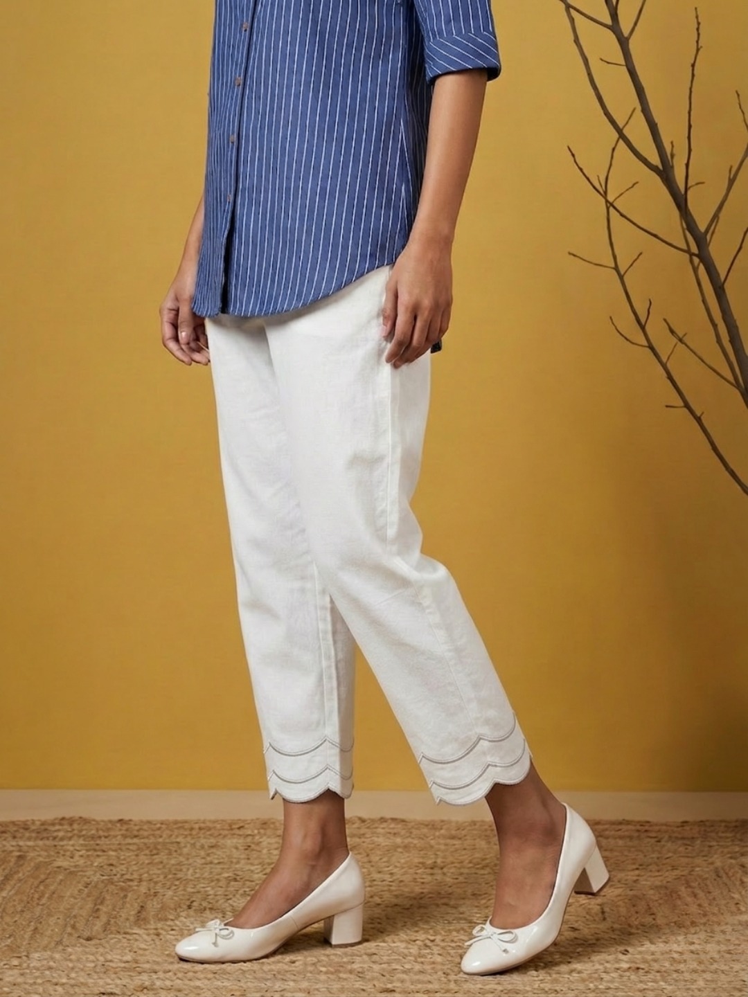 Relaxed-fit cotton pants with scalloped hem detailing