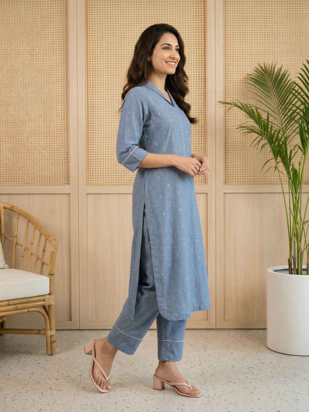 Structured kurta with a flattering silhouette paired with fitted yet comfortable pants.